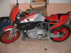 Presa d'aria dx, paratelai Ilmberger, scarico stock modificato, pastiglie sinterizzate Brembo. |
